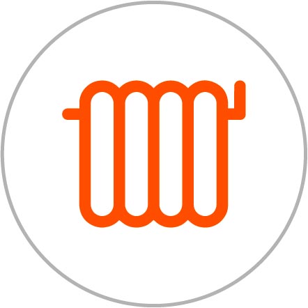 Radiación eficiente y segura a baja temperatura. Serpentinas en caño de polietileno reticulado (PEX). Colectores de distribución y regulación en bronce o tecnopolímero. Accesorios y válvulas italianas. Termostatización independiente por ambientes con cabezales eléctricos y termostatos de última generación.